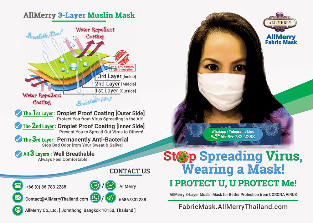QR Code printed on the label sticker [which is attached on the packaging of every mask] will link to the website www.AllMerry.com or www.AllMerryThailand.com at Product Detail page. Many product information will be described there. You can also type your inquiry in the contact form. Our CS staff will response within 48 hrs.